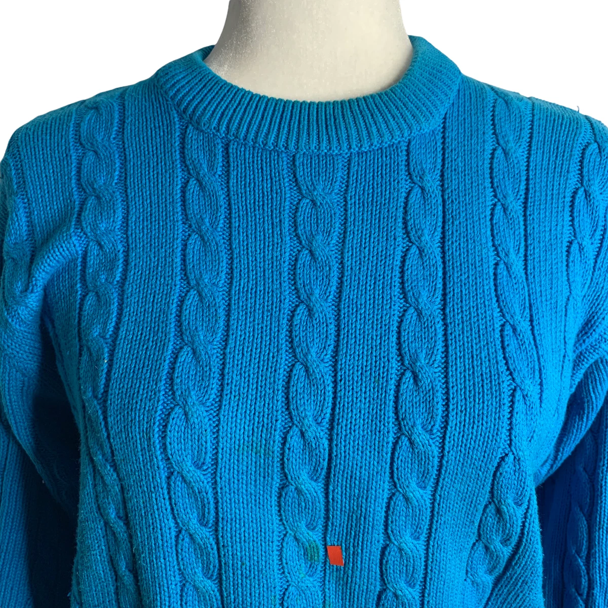 Vintage 80s Lord Taylor Cable Knit Sweater S Blue Crewneck Pullover Ebay