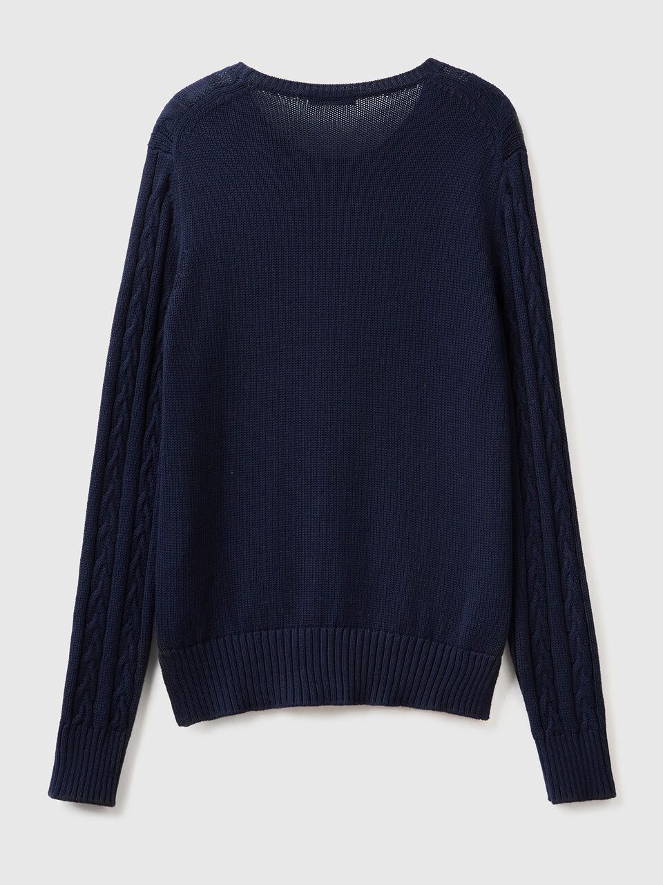 Cable Knit Sweater 100 Cotton Dark Blue Benetton